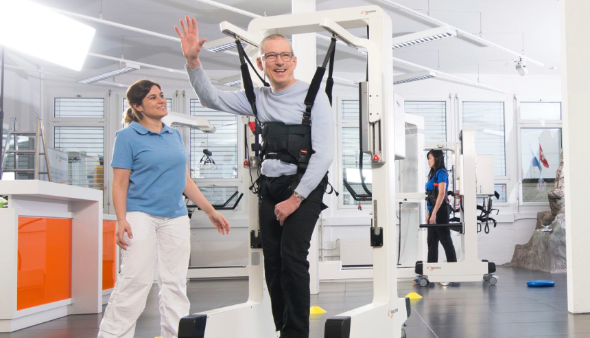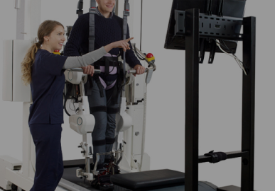 물리치료사 지원 아래 기존 보행훈련은 30분에 100걸음에 그쳤지만, 로봇재활의 도움으로 10배 증가시켜 1,000걸음을 걸을 수 있습니다.