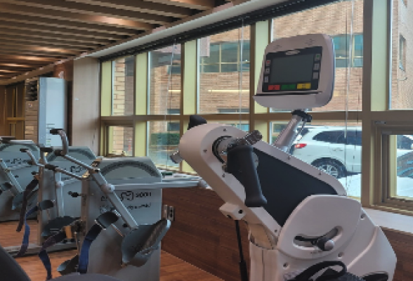 기구를 이용하여 환자의 기능적 상태에 맞게 전신 근력과 지구력을 효과적으로 유지 및 증진시키며 관절의 유연성과 근력을 증가시킵니다.