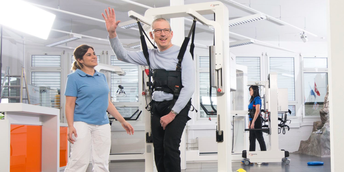 물리치료사 지원 아래 기존 보행훈련은 30분에 100걸음에 그쳤지만, 로봇재활의 도움으로 10배 증가시켜 1,000걸음을 걸을 수 있습니다.